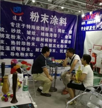 这两家公司对此次展会十分重视,携带先进的、环保的产品强势出征,展示公司硬实力。记者在这两家公司同属的1A650展位现场看到,人头攒动,前来咨询、交流的客户络绎不绝,特别是客商对他们的“仿电镀高光粉末涂料”、“低温透明粉”和“大小旋风环保喷房”这三款产品高度关注,十分感兴趣。一位外国宾客体验过产品后惊讶道:“这种涂膜像电镀效果一样,色彩艳丽,我从来没见过这么先进、这么好的产品!
